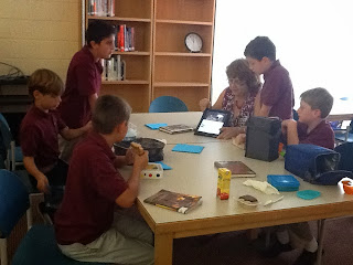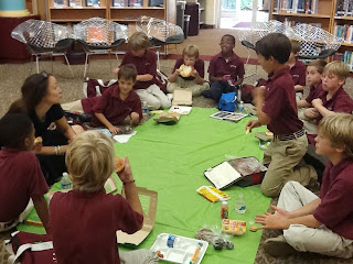 Here are our prefirst graders proudly displaying their monsters munching on the corners of their library books.