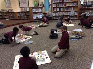 We then watch I Spy: More Than Meets the Eye, a VHS tape we have that walks the students through the process that Wick and Marzollo use. They see how actual layouts from the books are created and put together. Seeing the "Balloon Popper" from I Spy School Days actually work is always the most popular part of the video.